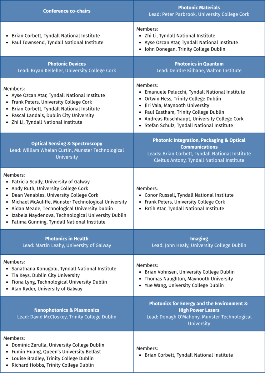 The conference is organised by IPIC, the Taighde Éireann – Research Ireland, formerly Science Foundation Ireland Centre for photonics. The organising team is based at Tyndall National Institute, Cork/Ireland and can be contacted at: